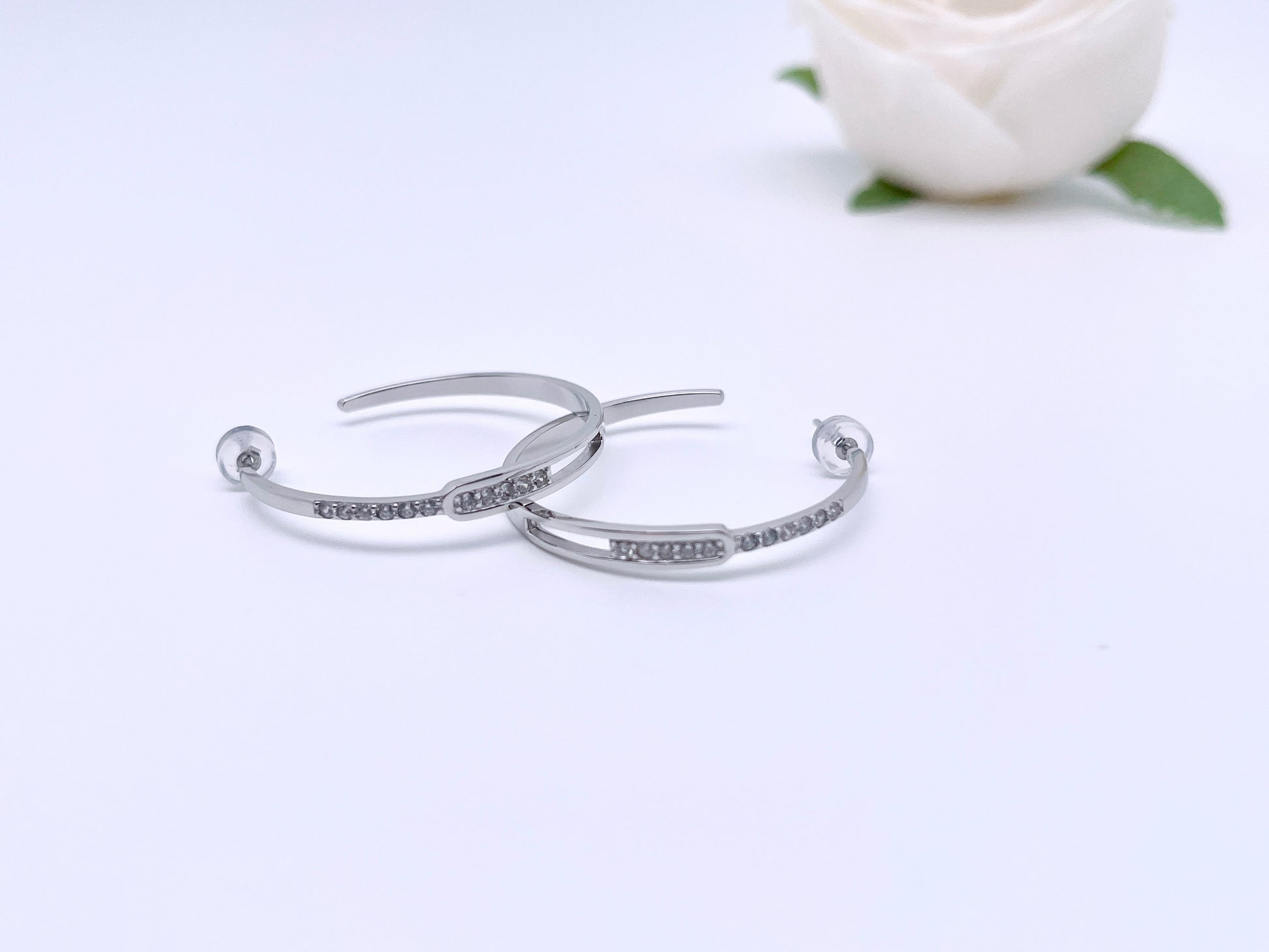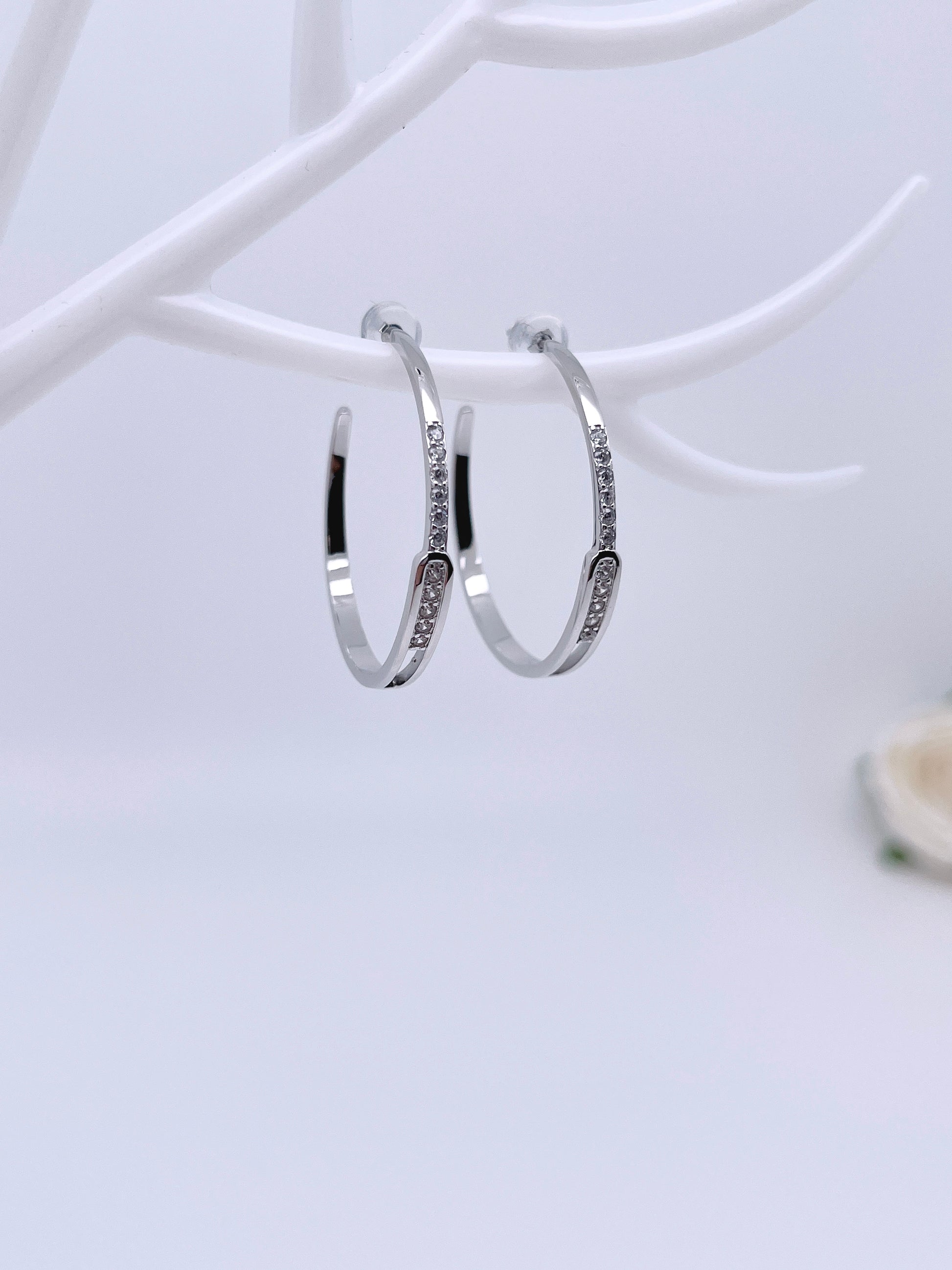 One of our popular signature hoop earrings!!! Hand-selected item. A perfect gift for that special someone, these open hoop earrings are crafted from rhodium plated sterling silver. High polished finish for long lasting shine that will never go dull. Add some extra shined sparkle to your daily wearing from now on.