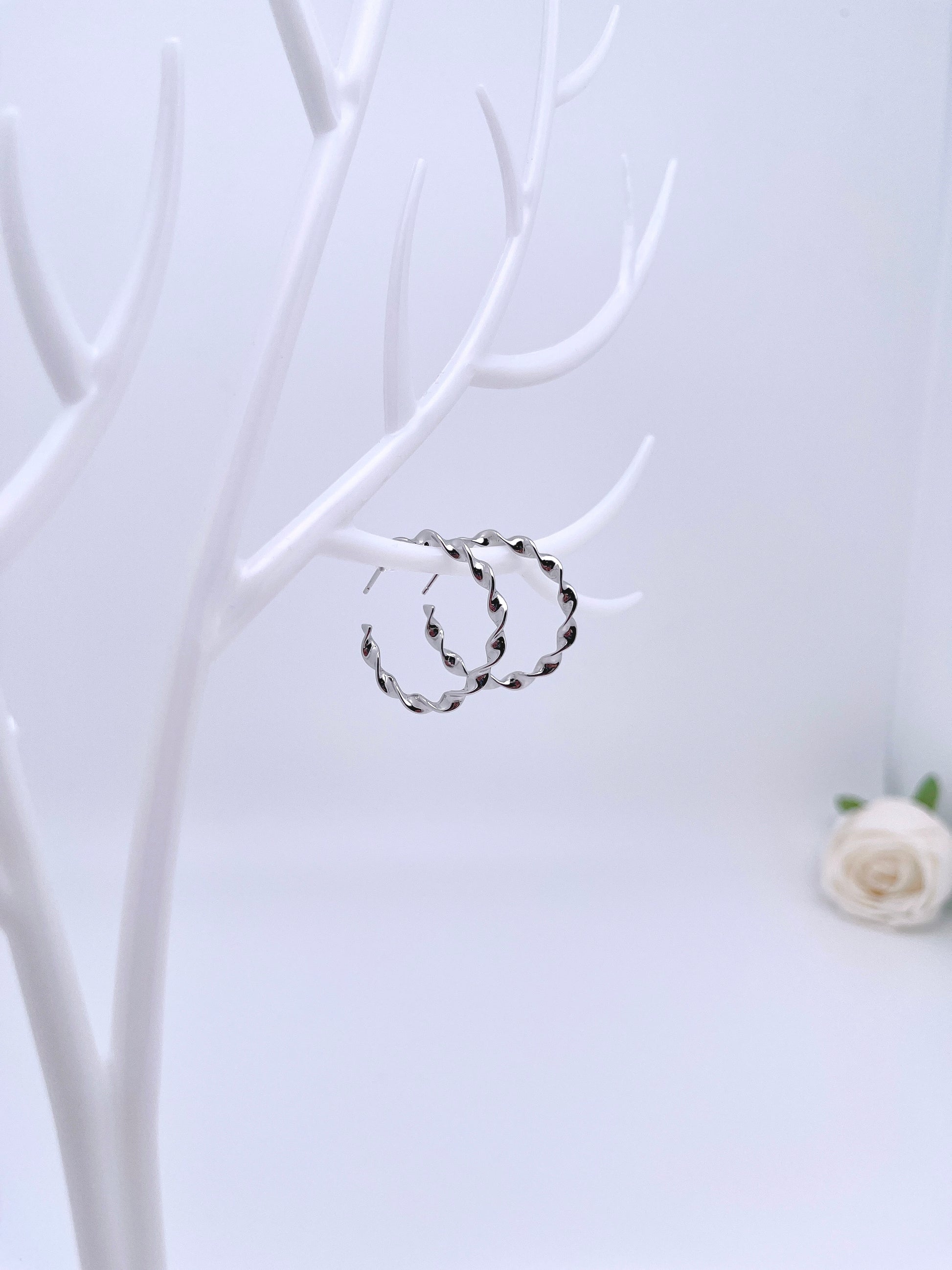 Big O Hoop Twist and Twirl Earrings in Sterling Silver