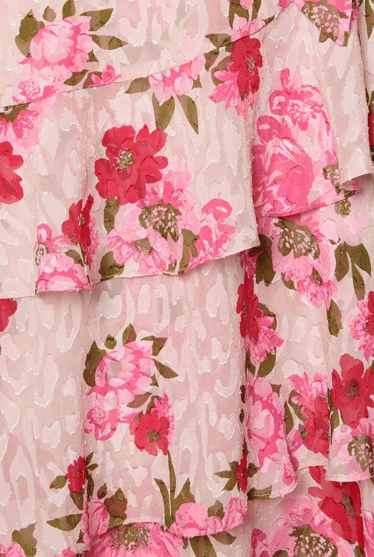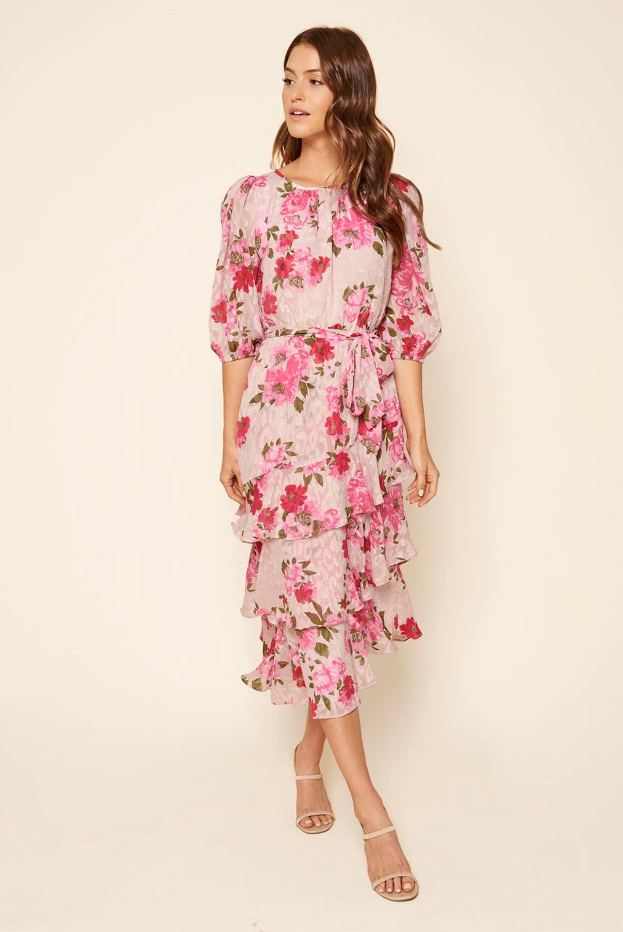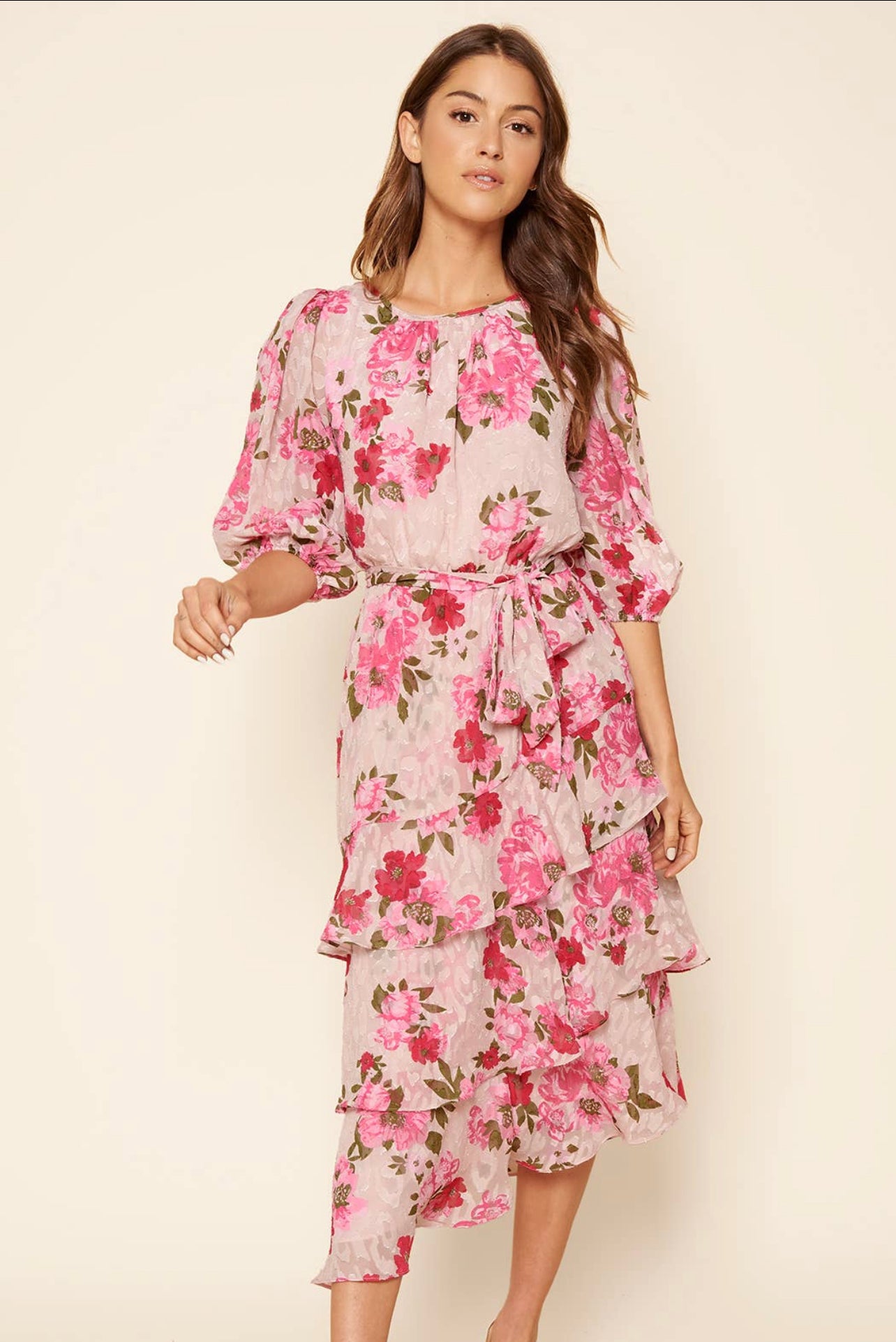 Celia Asymmetrical Ruffle Midi Dress with Ballon Sleeves