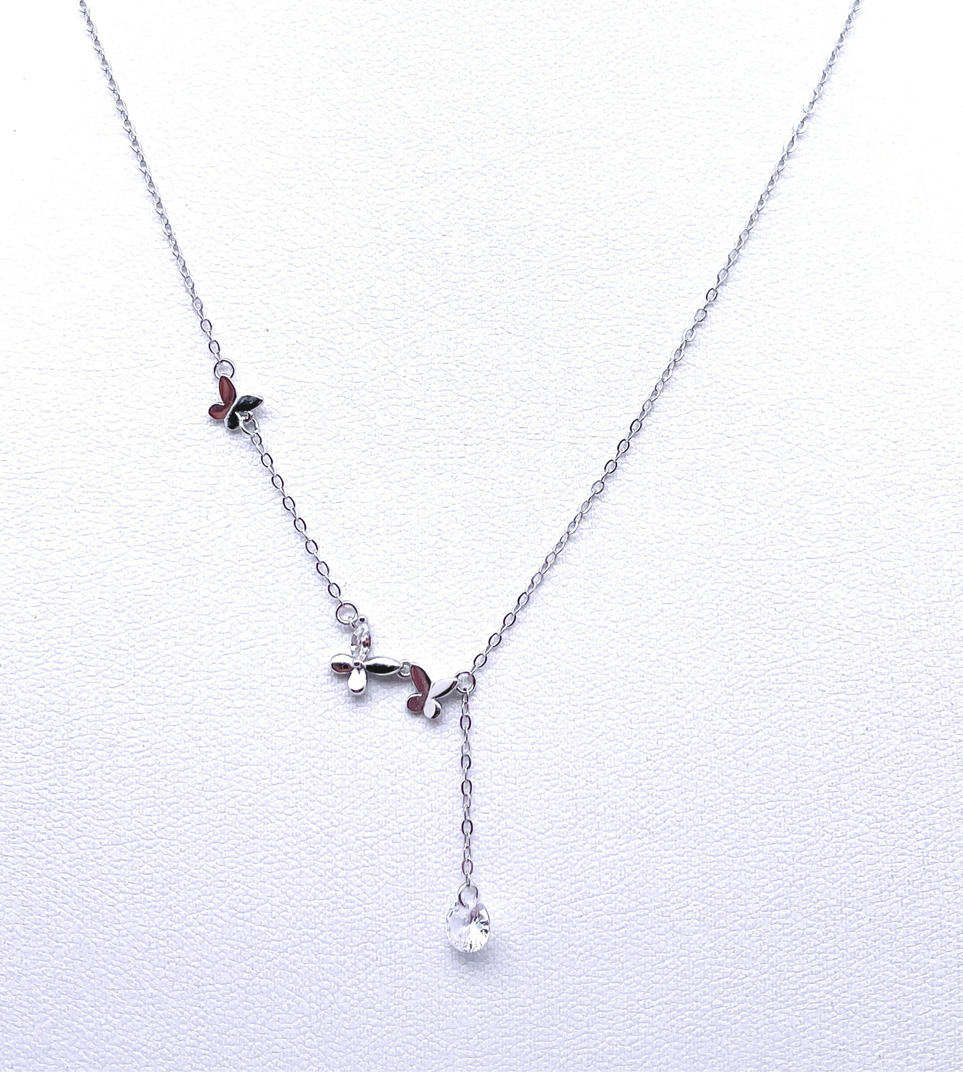 One of our popular butterflies necklaces. A nice gift for that special someone, these necklaces are crafted from rhodium plated sterling silver. High polished finish for long lasting shine that will never go dull. Simple and classic, it features a simple style for every day.