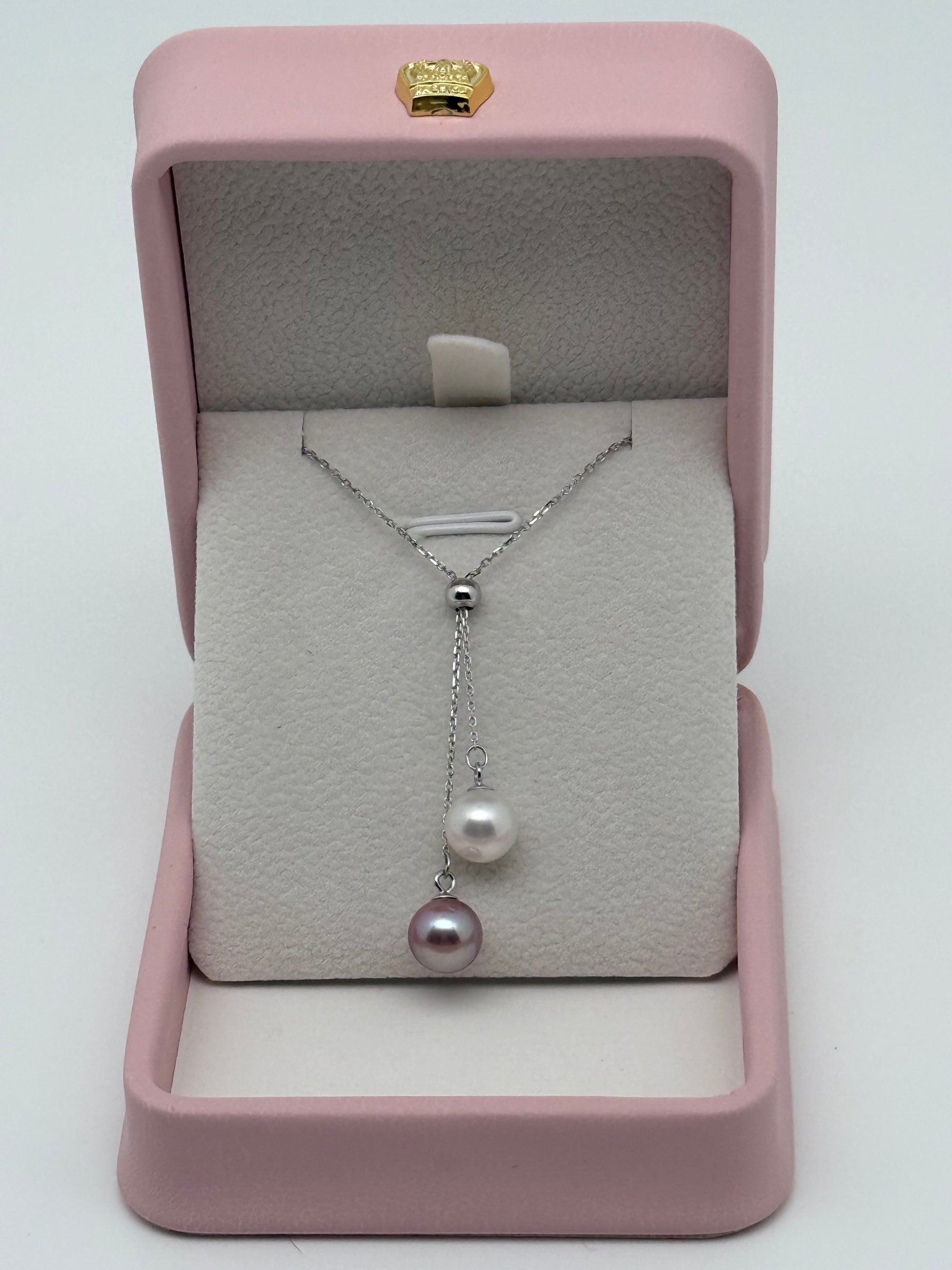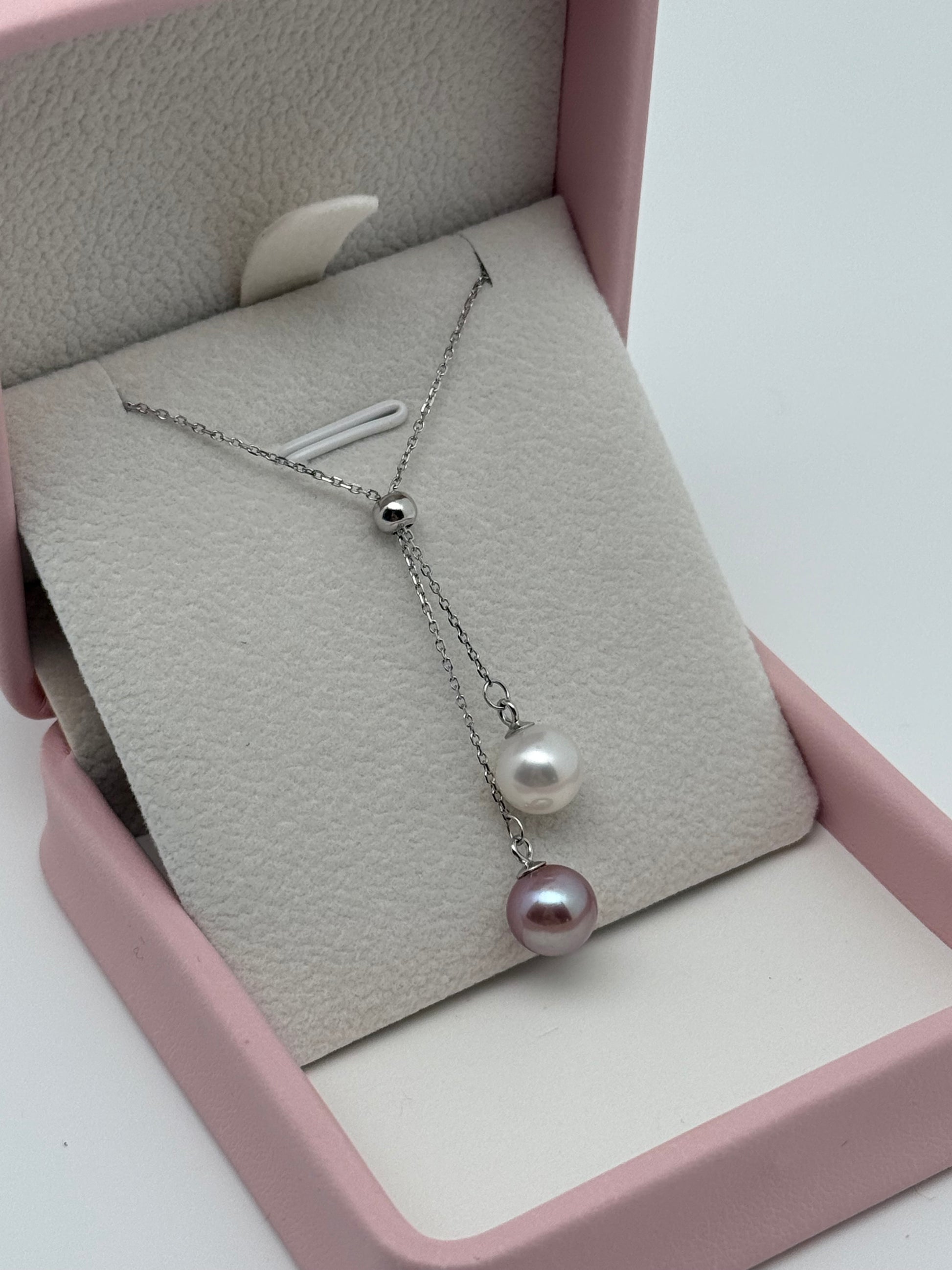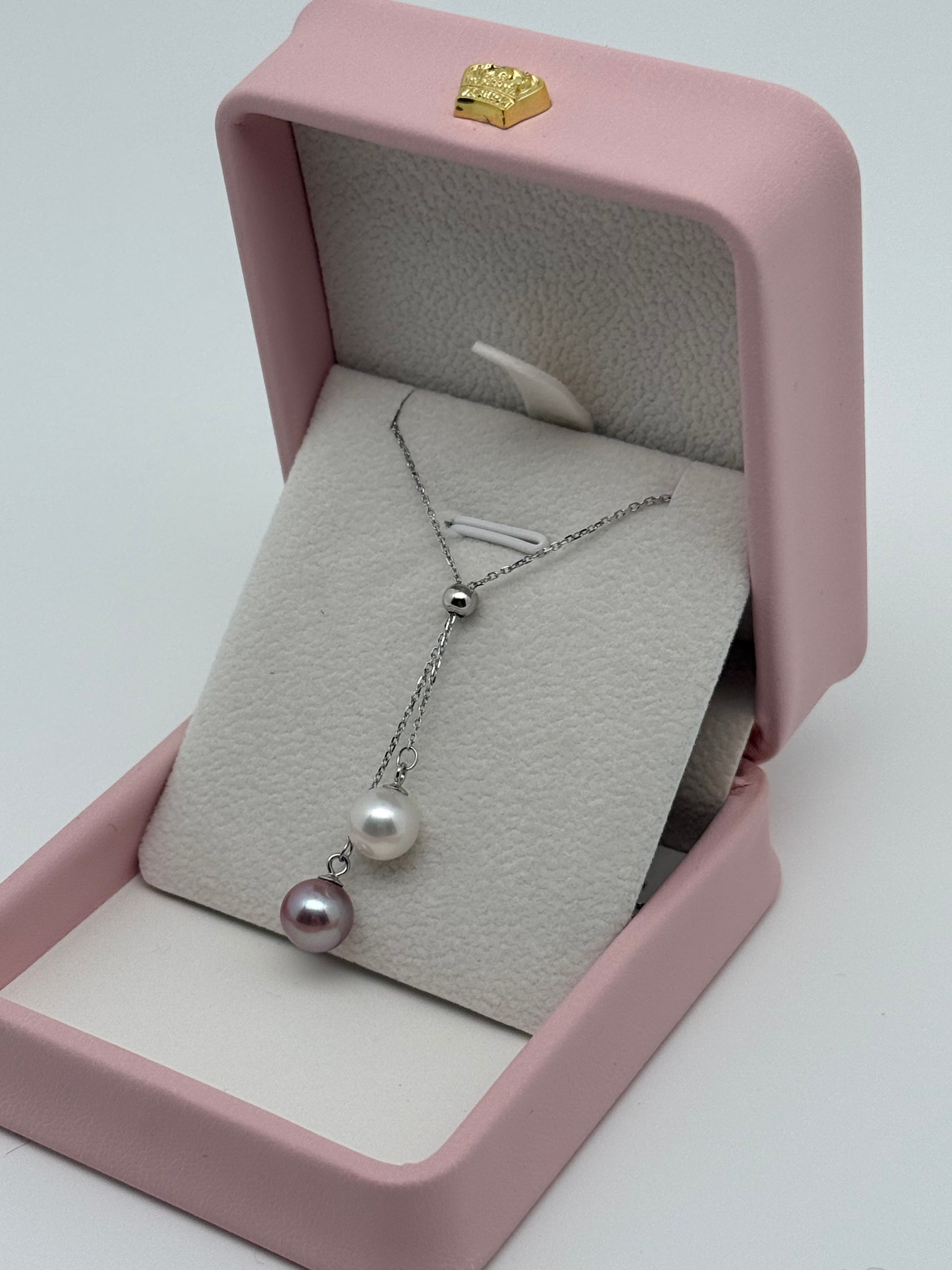 Double Adjustable Classic Pearl Pendant in Sterling Silver