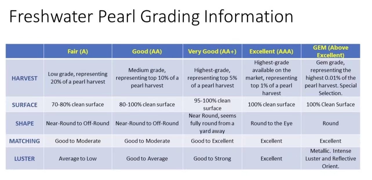 - Pearl color: white, purple, orange, gray