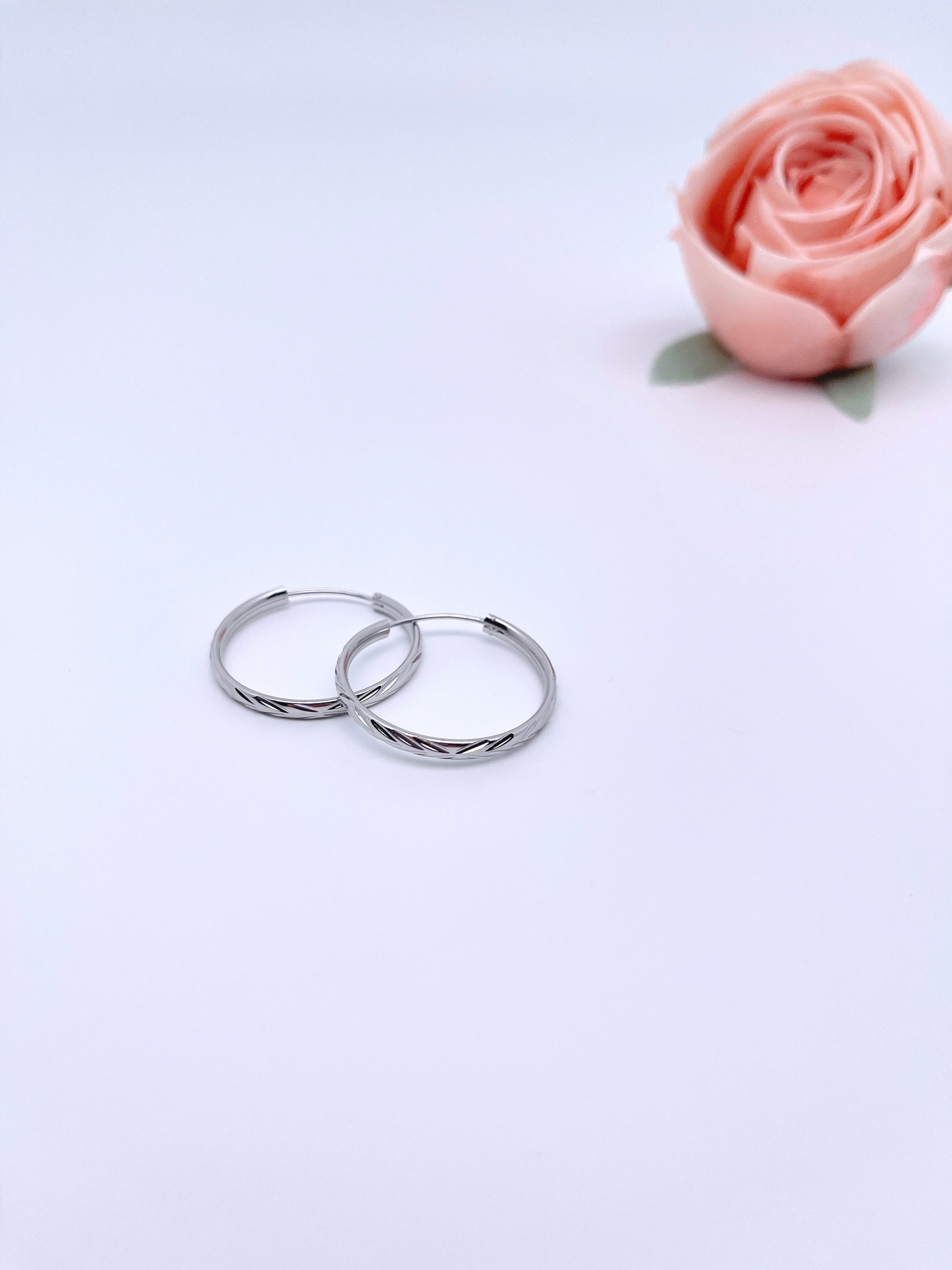 One of our popular signature hoop earrings!!! Hand Selected. A perfect gift for that special someone, these hoop earrings are crafted from rhodium plated sterling silver. High polished finish for long lasting shine that will never go dull. Add some extra shined sparkle to your daily wearing from now on.