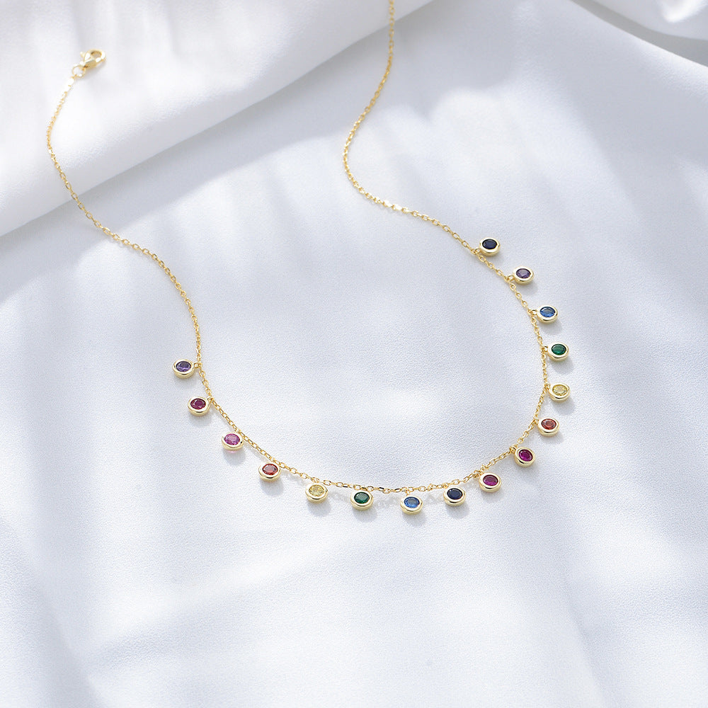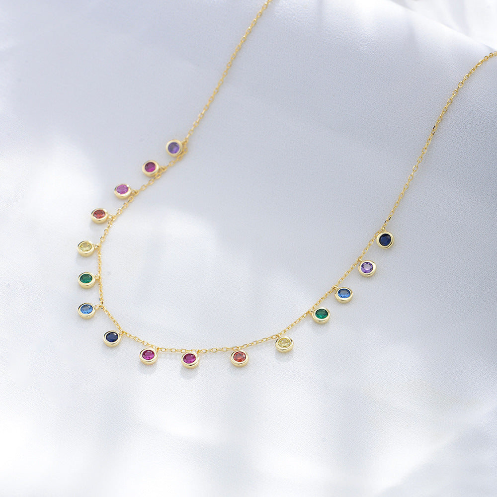 One of our popular signature Angel Rock Collection necklace!!! A nice gift for that special someone, these colorful zirconia necklace are crafted from rhodium plated sterling silver. High polished finish for long lasting shine. Add some coloring mood to your daily wearing from now on.
